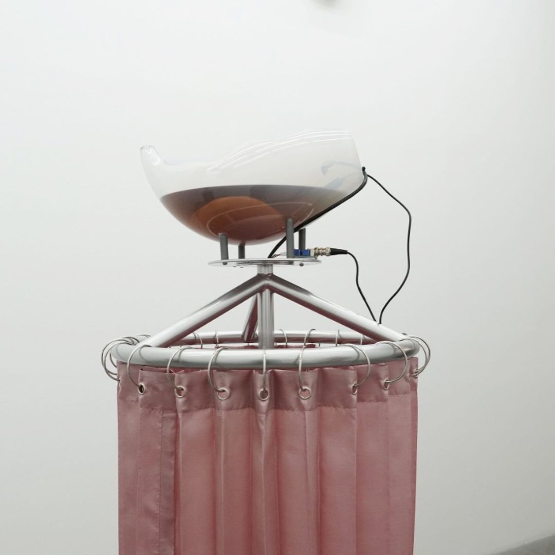 “Hybrida es un proyecto que especula sobre nuevas formas de vida, conectando nodos de los campos de la biología y la tecnología. La exposición consta de tres bioesculturas sonoras. En el interior de cada una de ellas residen organismos vivos (colonias de bacterias y levaduras) en un proceso continuo de fermentación. A través del uso de sensores, la actividad biológica se transforma en datos que finalmente se traducen en un ambiente sonoro de sonidos gástricos e intestinales. Estos estímulos sonoros representan una forma de expresión de los procesos orgánicos, mediados por el lenguaje tecnológico.”