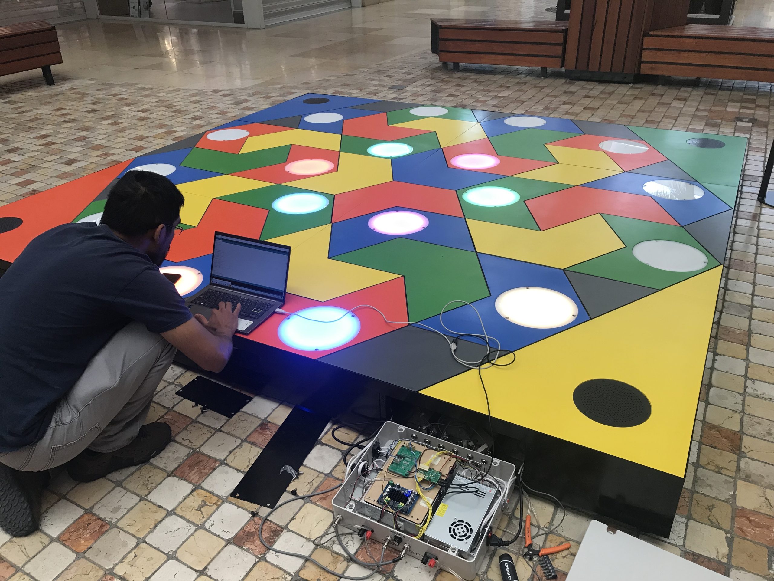 Nos encargamos del diseño electrónico y la instalación del hardware de esta plataforma musical interactiva. Este tapete se instaló en varios centros comerciales a lo largo del país, entre Junio y Octubre de 2023.