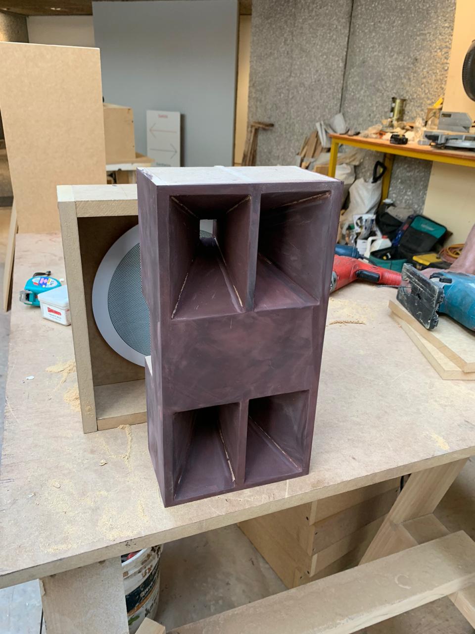 Para esta pieza, diseñamos un circuito para gestionar la carga/descarga de baterias de gran formato que alimentaban un sistema de sonido de ocho canales.