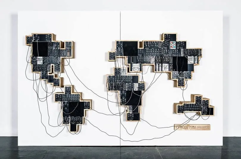 The Global Synthesizer Project de Yuri Suzuki es una instalación sonora interactiva que invita a los usuarios a explorar y manipular paisajes sonoros de todo el mundo. Desarrollado en colaboración con Moog Music, este proyecto combina tecnología de síntesis modular con grabaciones de campo recopiladas globalmente, permitiendo al espectador crear nuevas composiciones a partir de distintos sonidos ambientales.